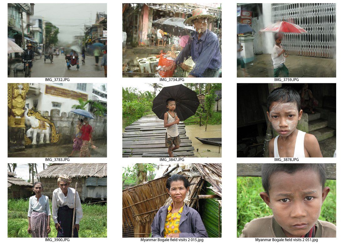 Все представленные фотографии сделаны портативной любительской цифровой фотокамерой во время визитов в удаленные и труднодоступные деревни, куда невозможно попасть рядовому туристу. На этих снимках -- реальная жизнь той Мьянмы, которая находится вне основных туристических маршрутов. Это моментальные портреты и сценки повседневной жизни самых обычных мьянмарцев (бирманцев), которые, несмотря на постигшую их страшную трагедию, не теряют оптимизма и жажды жизни.