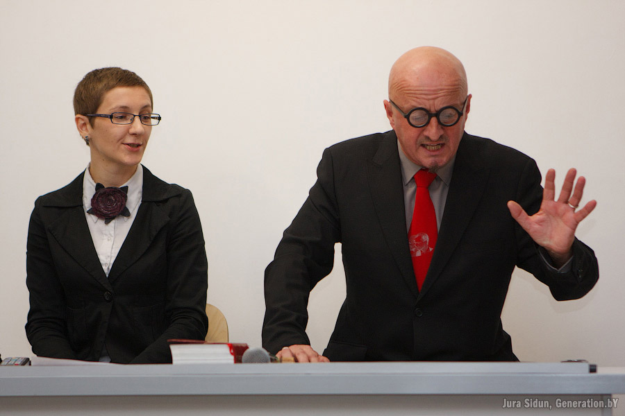 Галерее современного искусства «Ў» исполнился год. Галерея решила отметить это событие с одной стороны громко, с другой – с пользой для дела. Выбрали неопробованную форму гражданского суда, приправленную элементами шоу. Судя по вопросам и собравшимся защитникам-обвинителям-прокурорам дело должно было быть серьезным и стоящим.