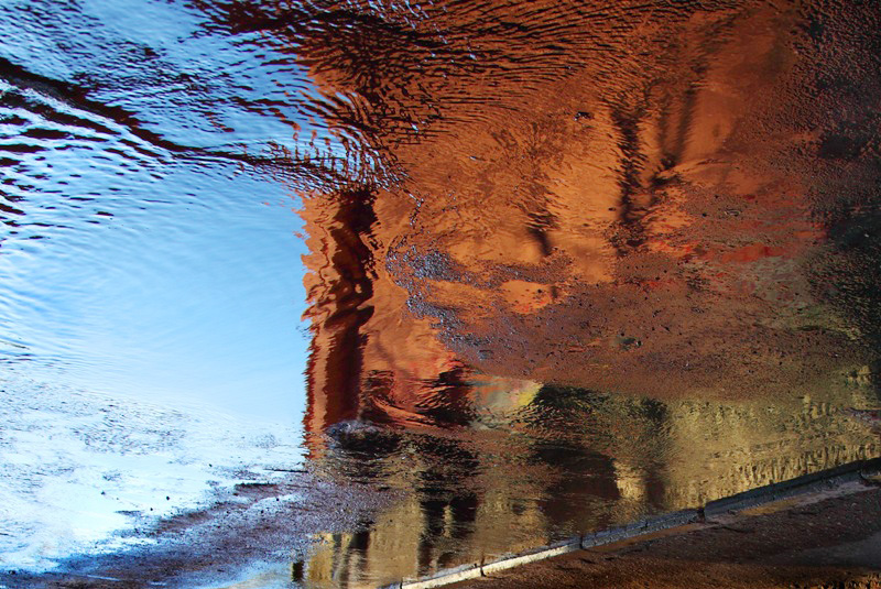 и отражается в них всё. но в другом цвете: совсем не как в озере каком-нибудь. потому что это лужа - под водой серо-коричневая плитка!)