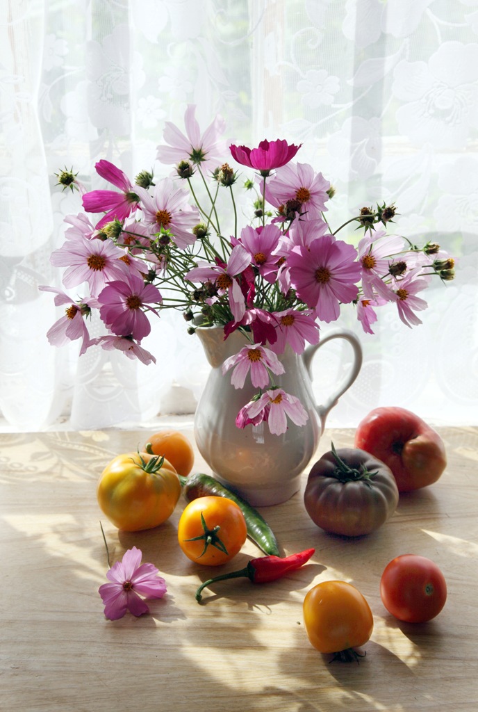 Ранее опубликованный букетик космеи тоже очень хорош. Люблю этот цветок, семян бы раздобыть - уже есть где его поселить.
