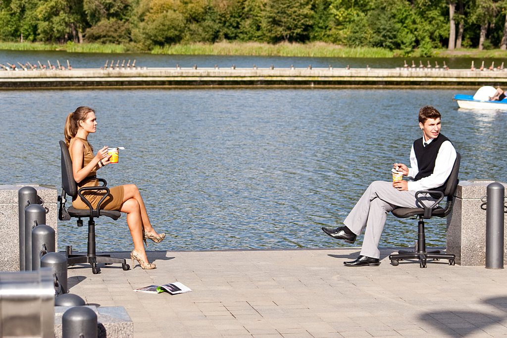 Вчера вот такая парочка в креслах ела роллтон на берегу Комсомольского озера :D