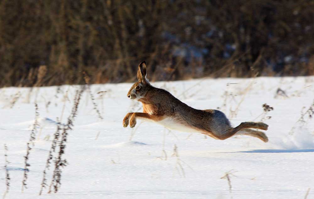 Сапраўды папаўся: спачатку на здымку у Алены -- дзяцей можна тымі бахіламі страшыць. Праўда, я іх папярэдзіў, што гэта спецыяльныя прытасаванні, каб нармальна хадзіць па вялікім снезе. А потым і Уладзімір гэта зафіксаваў. Аднак самы галоўны кадр з фотапалявання не атрымаўся ў Сашы Пекача -- калі заяц падбег да мянее ззаду на пяць метраў і прысеў на нейкак імгненне ... Во дзе можна было крытыкаваць фотапаляўнічага, які нічога на не бачыць!