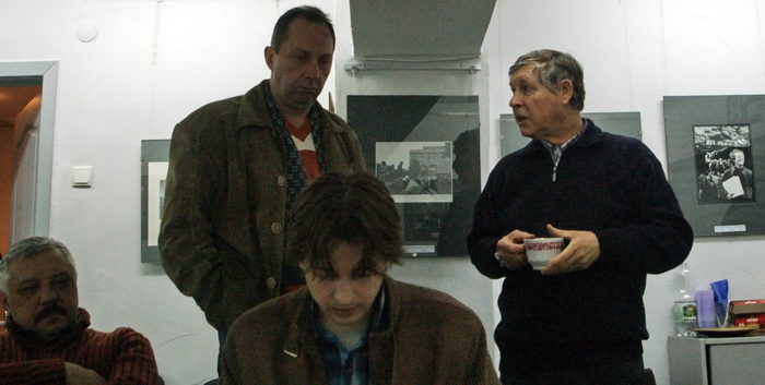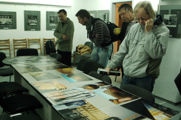 В прошлый четверг даже открытия выставок Виталия Раковича (в нац.библ) и Надежды Дегтярёвой (в галерее "У") не сбили рабочее настроение в галерее клуба по обсуждению новых проектов членов клуба! (на столе - работы Людмилы Сиденко):