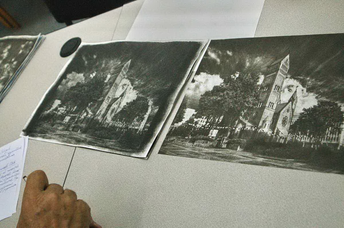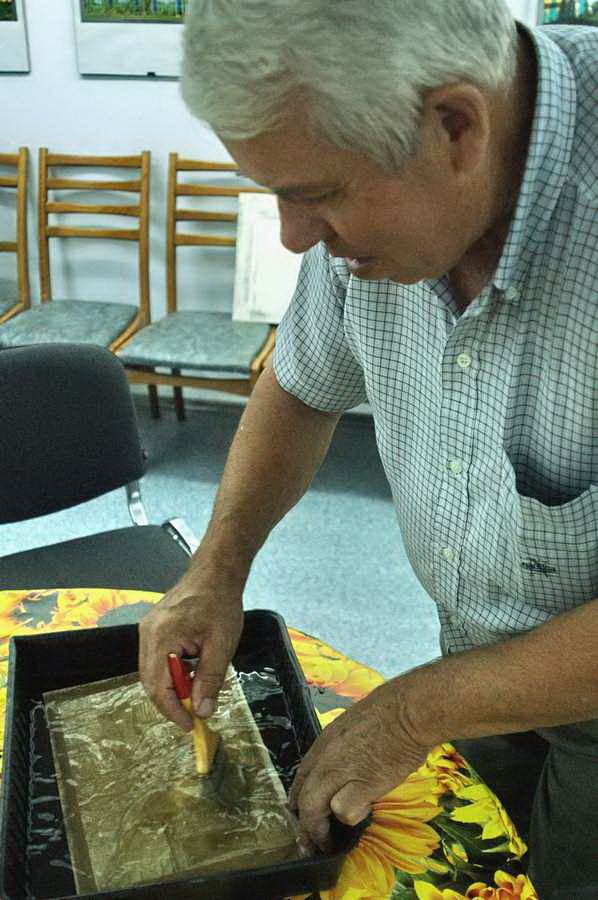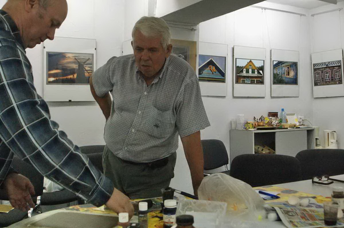 На снимках – Евгений Козюля под чутким, мастерским руководством Виктора Журавкова познаёт таинство темперапринта!