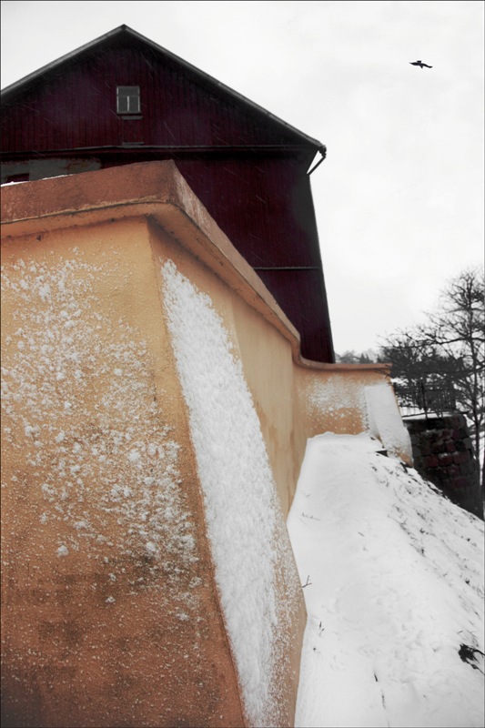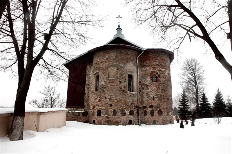 Сегодня днем навестила Коложский парк, в котором с ХII века на высоком берегу Немана стоит замечательный храм древнерусской старины - Борисо-Глебская церковь. Шел мокрый снег, под ногами хлюпало, ни единой души вокруг, калитка дворика церкви была закрыта на замок, сильный влажный ветер с Немана продувал одежду насквозь - не задалась погода для таких дальних прогулок. Подняла фотокамеру и через невысокую каменную ограду сделала несколько фотографий древних стен Коложской церкви.