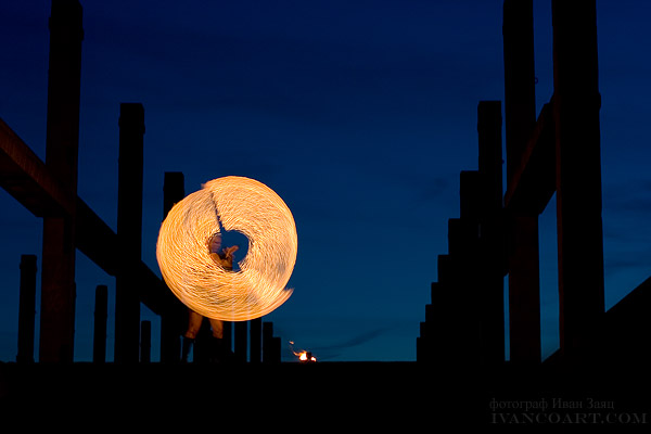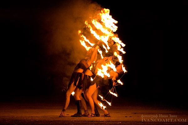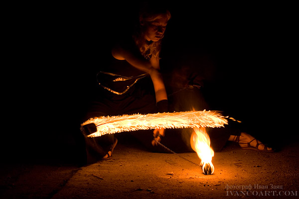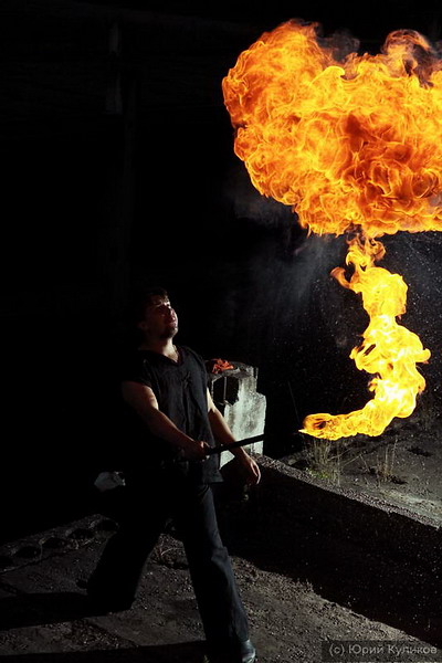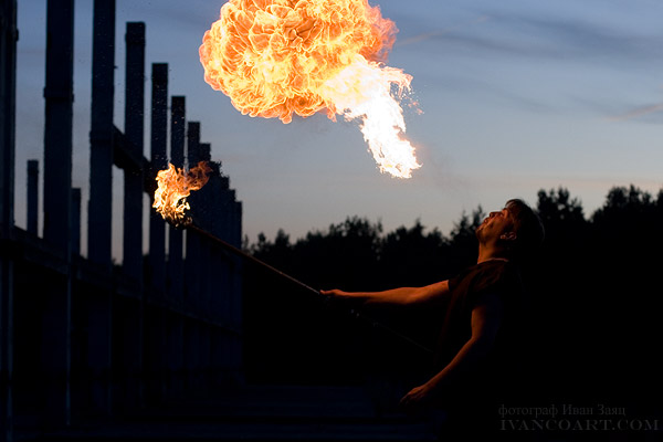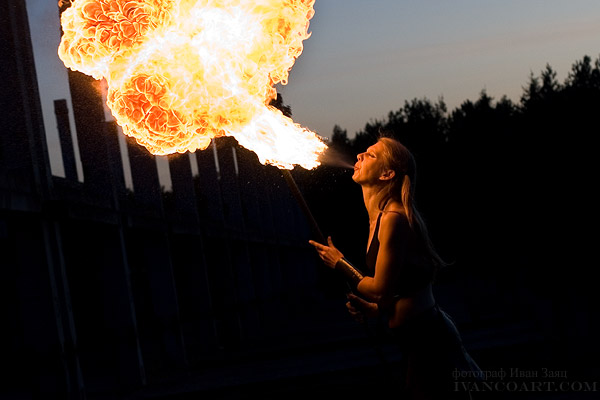 Для меня было удивлением, что снимать, оказывается, можно и на ISO 1600 с выдержкой 1/2000. Очень хорошо передается фактура огня. Правда, так и не решился пока технический вопрос с синхронизацией вспышки на этой выдержке.