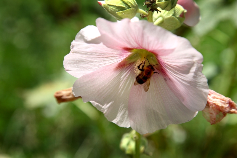 Два часа назад вышла во двор нашего дома - всюду цветет мальва, рай для шмелей и отрада для глаз. Сфотографировала: