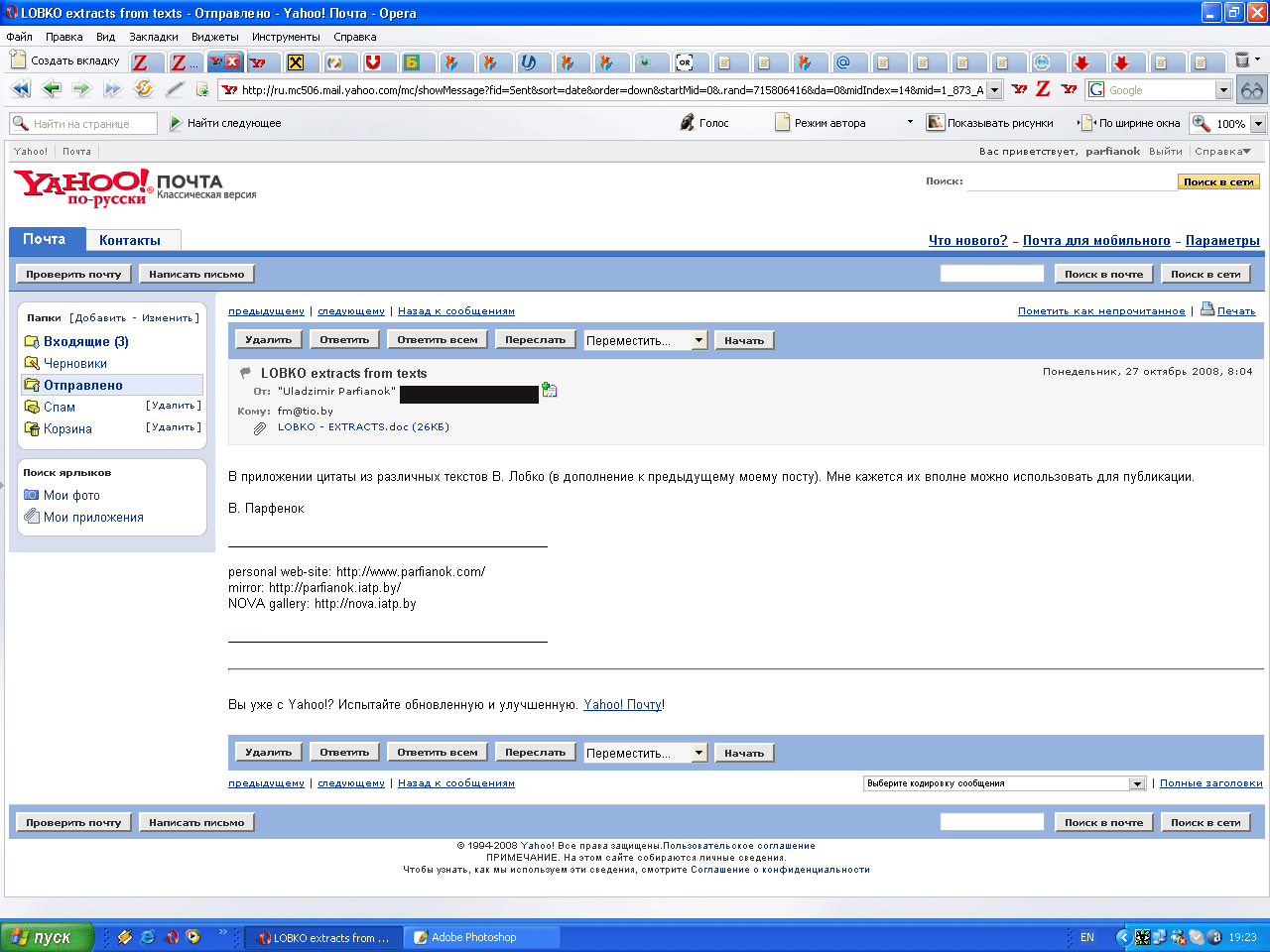 среди "непутевых", надо полагать, оказались и выдержки из разных текстов В.Лобко, сделанных мной...