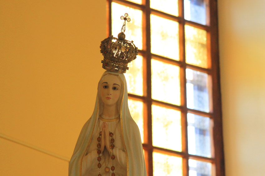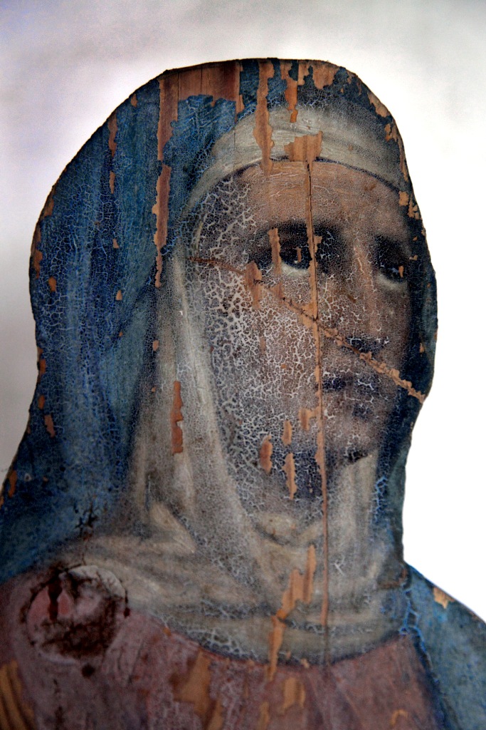 На последнем снимке у скульптуры Девы Марии из-за повернутой немного набок короны смущенный вид.