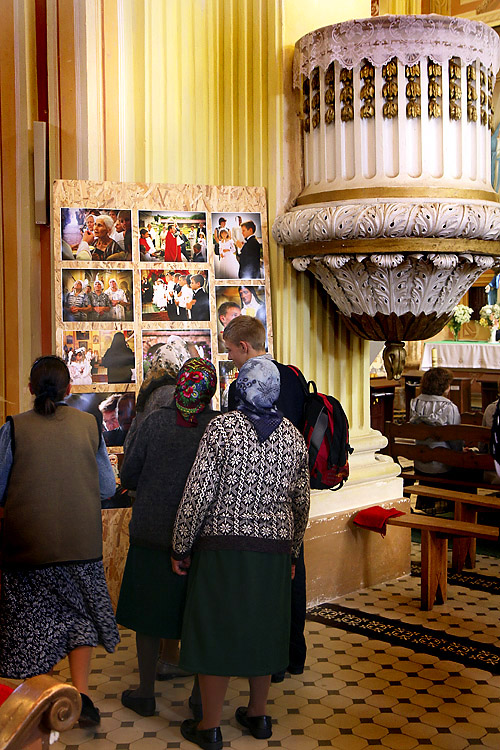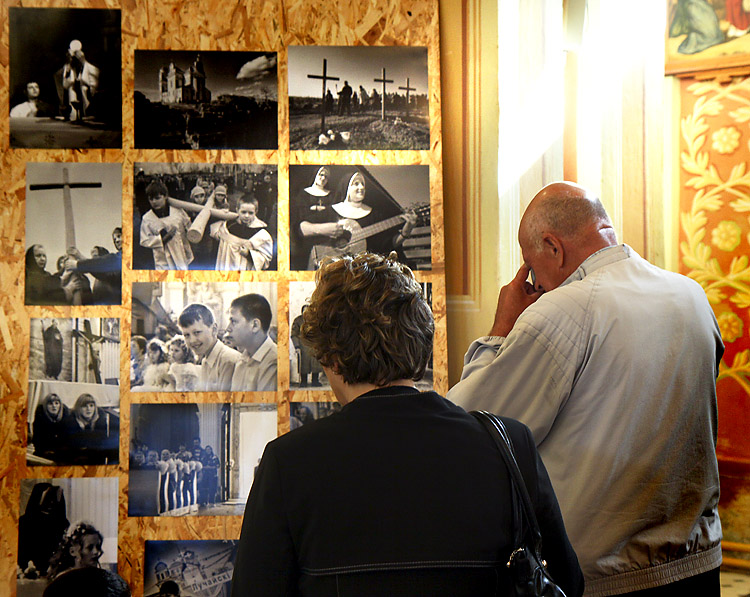 Людзі, касцёл, настрой, эмоцыі, перажыванні — усё гэта цесна пераплецена ў фотаздымках, якіх у касцёле размешчана 70. Выстава будзе знаходзіцца ў каталіцкай святыні да канца года."