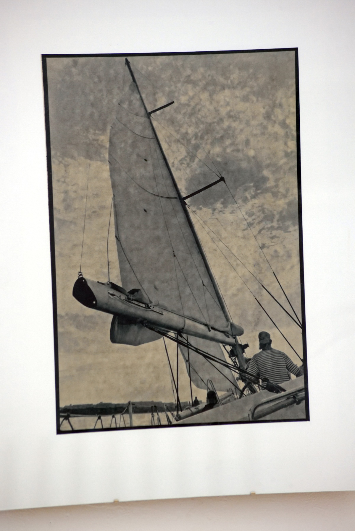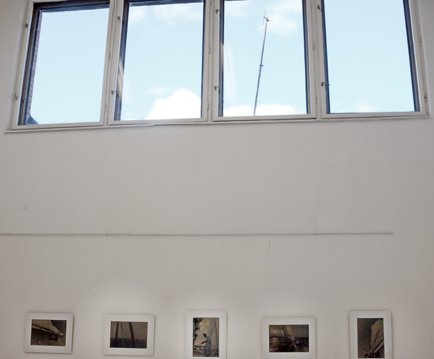 В зале Наташи Евмененко отчётливо слышна мелодия и «корабля пустыни» и «солёных брызг» на «корабле морском»! Интересным показалось и случайное ли (?!) визуальное «сродство» мачты антенны, что выглядывает в незакрытом окне над центральным фоторядом из Наташиной яхтенной одиссеи. Лёгкий диссонанс восприятию лично мне дала фотографическая детальность ощущаемой современности на некоторых снимках, но в стиле «старогазетная типографская пропитанность» на их отпечатках.