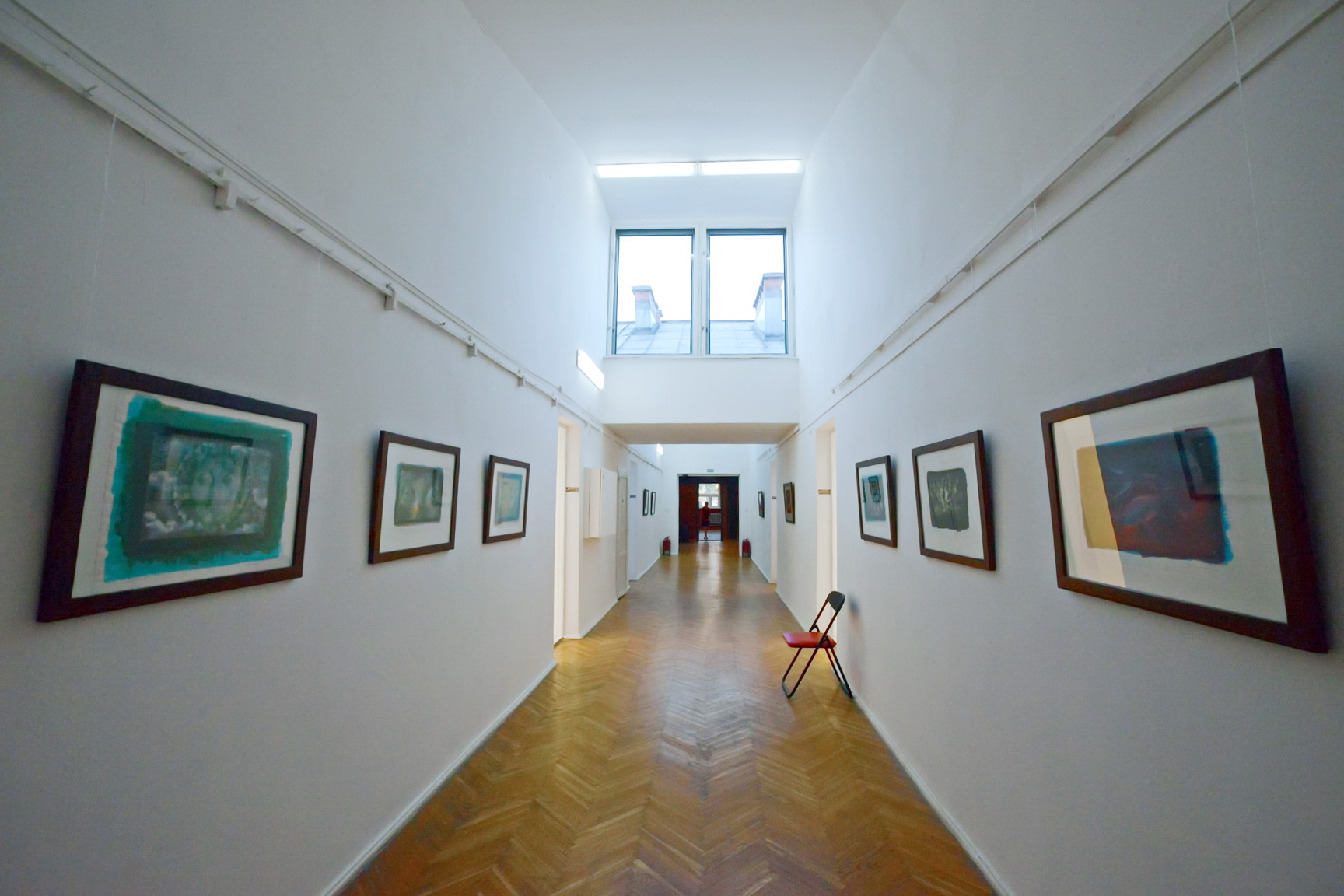 Поднявшись на 2 этаж обнаружим несколько путей: можно проследовать в центральный коридор, в котором привлекают внимание расположенные здесь полихроматические работы Андрея Воскресенского, несущие в себе настроение и мелодику Эллады.