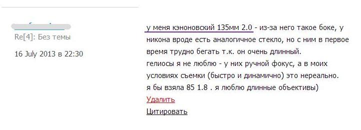 Еще как вариант можете глянуть Carl Zeiss Planar 85/1.4 c/y, а вот тест, по которому планар выирывает, а цена у них примерно одинакова - http://evtifeev.com/8897-gelios-40-2-85 ... 4-c-y.html