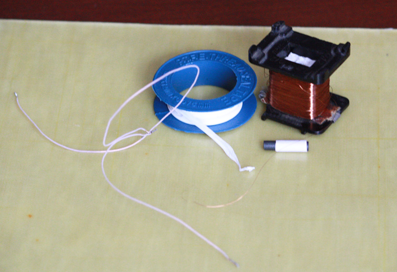 фум (тефлоновая лента) для изоляции обмоток. Тефлон можно купить там где торгуют сантехникой, вернее прокладками к ней и прочими запчастями) – стоит менее 1000рэ