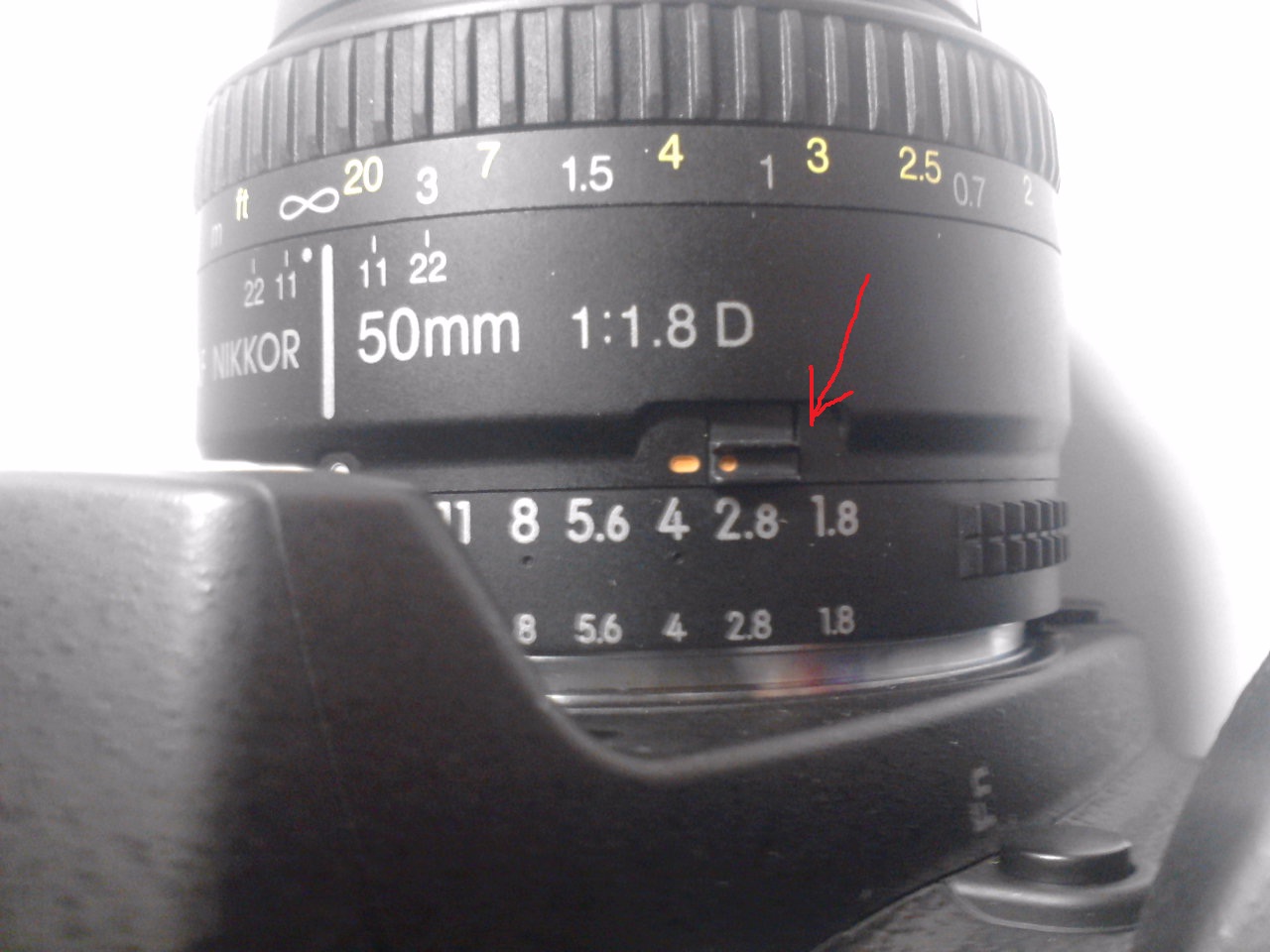 Переключатель про который спрашивали - это как уже было сказанно блокировка диафрагменного кольца. Применяется обычно при работе с камерой, умеющей автоматически управлять диафрагмой. Ставится на положение 22 (максимально закрыто), защёлкивается переключателем и больше никогда не трогается.