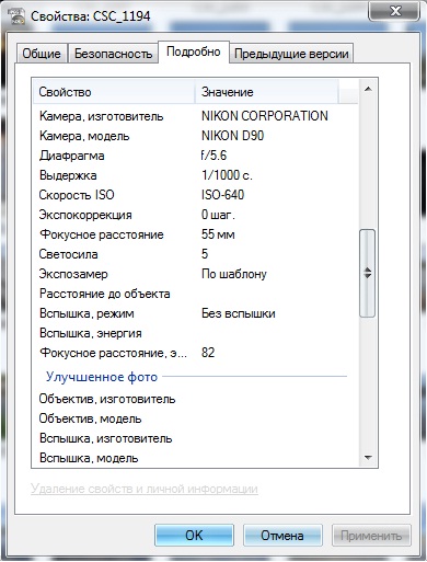 Вопрос № 2) Возможно ли после преобразования снимка в Фотошопе сохранить его с изменениями, НО чтобы в Свойствах остались "Подробности" при какой диафрагме/выдержке и прочем я его запечатлил...?