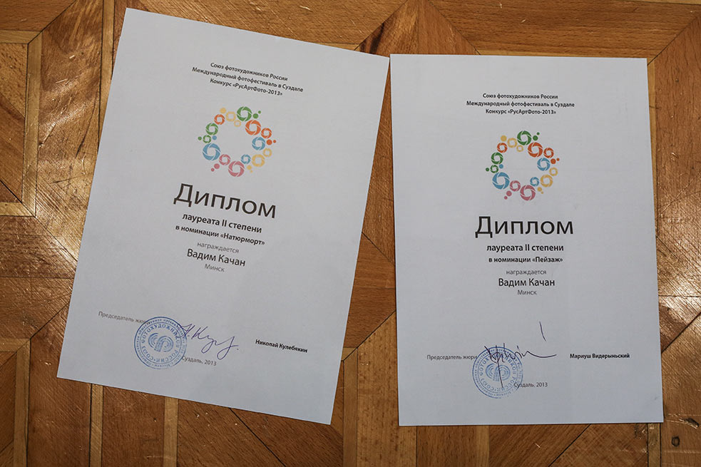 В Минске был Мариуш Ведеринский (член жюри РусАртФото 2013) и вручил мне дипломы