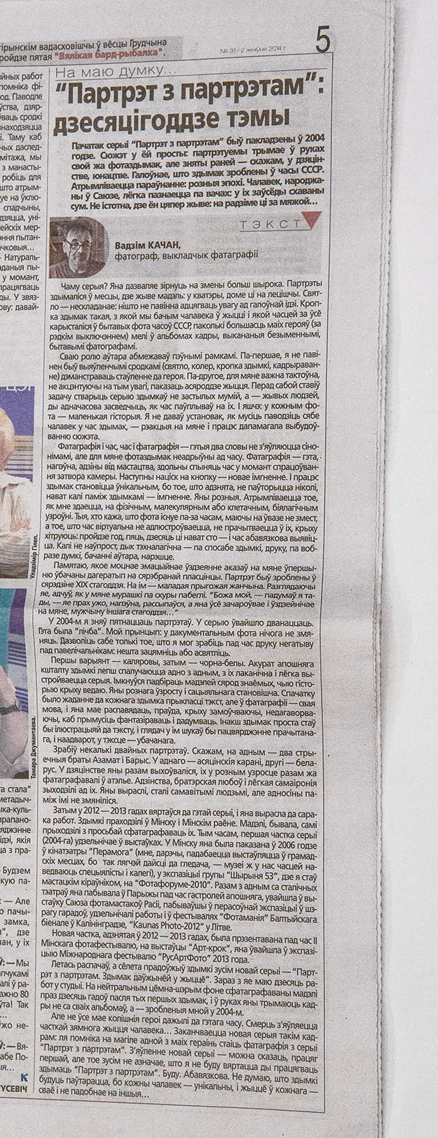 В субботу в газете "Культура" в разделе "На маю думку" опубликован мой текст "Партрэт з партрэтам": дзесяцiгодзе тэмы" и снимки из серий "Портрет с портретом" 2004-2013г.г. "Портрет с портретом. Снимок длиною в жизнь" 2013-2014г.г.