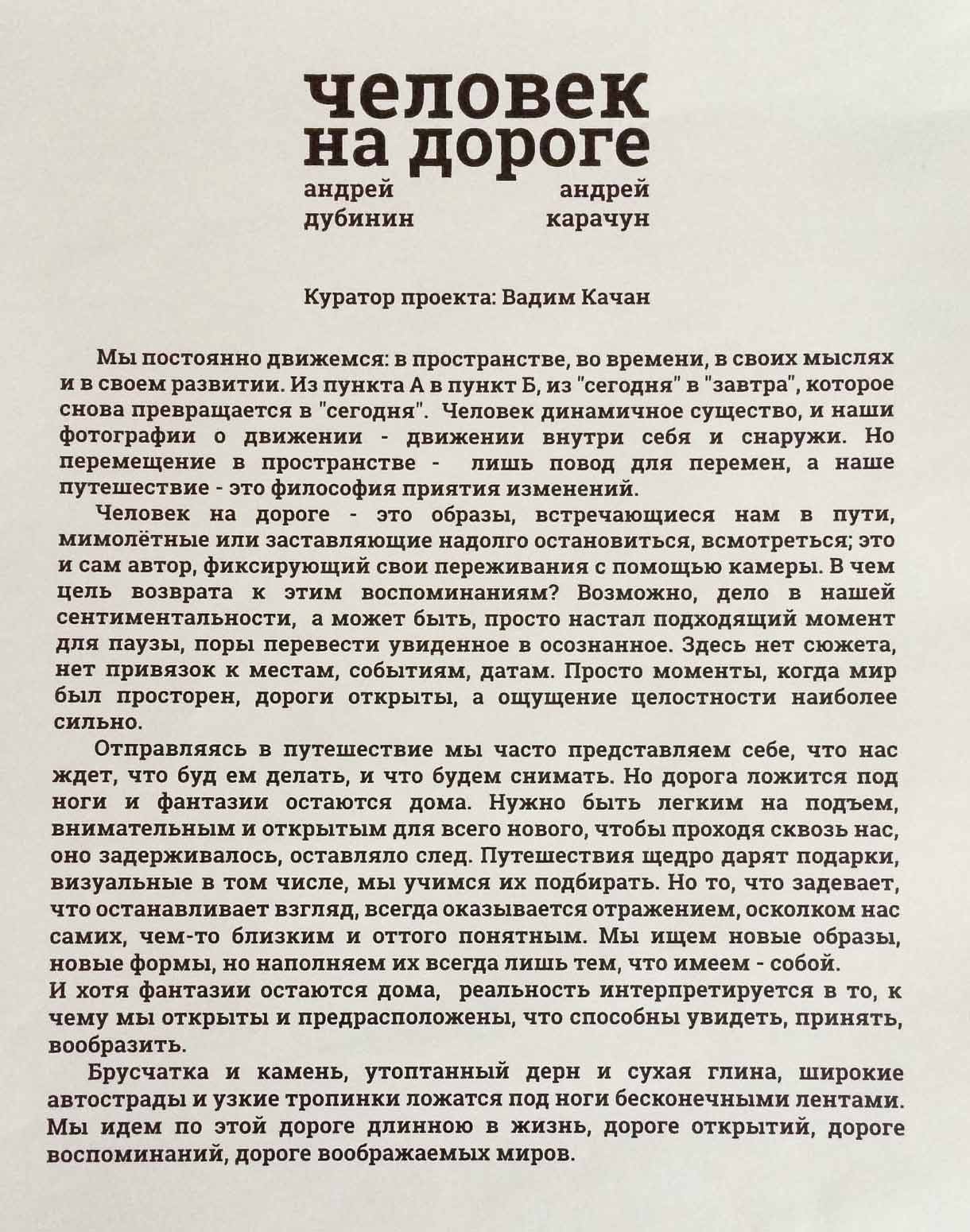 В кинотеатре "Центральный" открылась фотовыставка "Человек на дороге" авторы Андрей Дубинин и Андрей Карачун, куратор Вадим Качан.