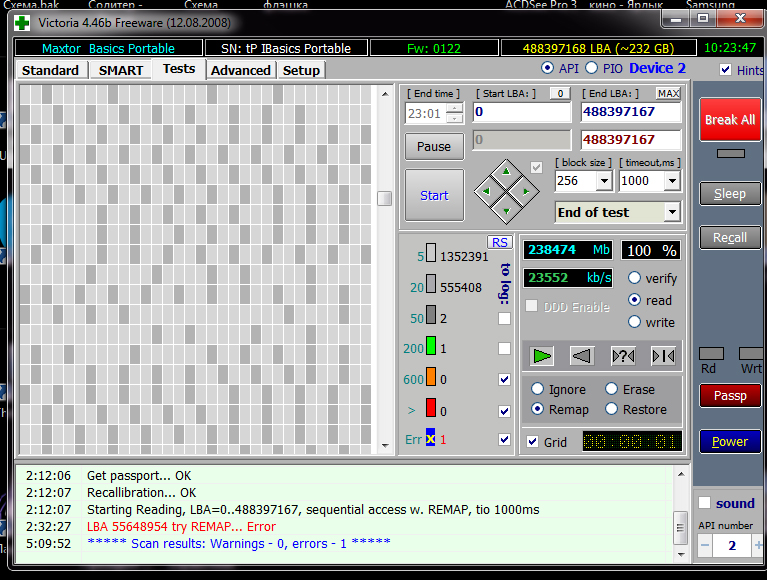 Дарэчы, паспрабаваў праверыць дыскі выправіць хібы адмысловай праграмай. Вось скрыншот таго, што выйшла. Мо гэта ў нечым дапаможа