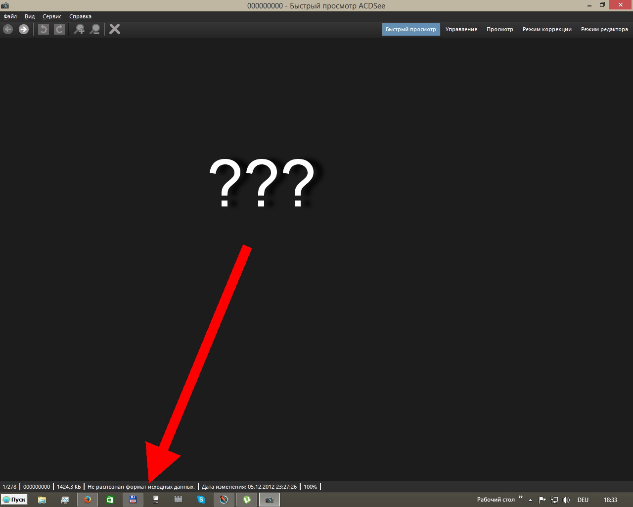 Господа, доброго времени суток! Я столкнулся с такой проблемой: случайно удалил папку с фотографиями. Тут же восстановил её через DMDE, но больше половины фотографий теперь невозможно просмотреть. При открывании через стандартную программу просмотра вместо изображения появляется такой текст: "Средство просмотра фотографий Windows не может открыть это изображение, поскольку формат данного файла не поддерживается или отсутствуют последние обновления средства просмотра изображений". Если заглянуть в свойства файла с фотографией, то информация в нём наблюдается (все файлы больше 100 кб), значит повреждений не должно быть. Что делать - не знаю. Помогите, пожалуйста. Пользуюсь Windows 7.