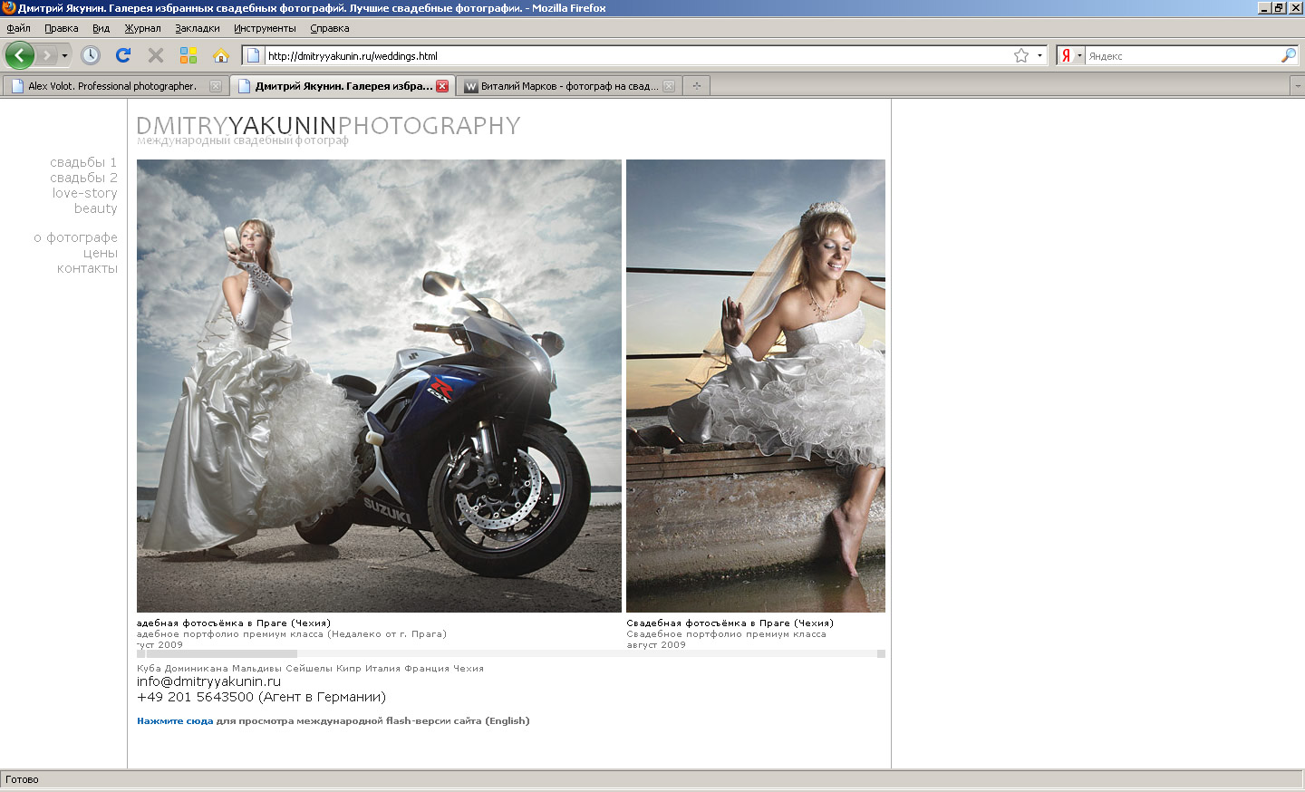 Дмитрий Якунин (Dmitry Yakunin) - уникальный русскоязычный фотограф, работающий во всех уголках земного шара . Единственный фотограф, проводящий полноценные элитные свадебные фотосъёмки по цене, в два раза ниже большинства элитных фотографов России и Мира. Великолепное качество фотографий, техничность и высочайшее мастерство свадебных фотографий Дмитрия Якунина оценено на нескольких международных конкурсах свадебной фотографии. Действительно интересные творческие идеи, красочность, чувства и эмоции настоящей свадебной фотографии - это и есть свадебная фотография от редкого профессионала - Дмитрия Якунина. Описание: Свадебный фотограф на Кубе, Кипре, в Праге, в Доминикане, Италии. Профессиональный свадебный фотограф на Мальдивах, Сейшелах, Бали. Свадебная фотография на Кубе, Кипре, в Праге. Элитная свадебная фотосъёмка, свадебное портфолио, Love-Story, Лав-Стори. Свадьбы на Кипре, Кубе, Праге, Доминикане, Бали, Сейшелах. Лучшие свадебные фотографии со всех уголков мира.