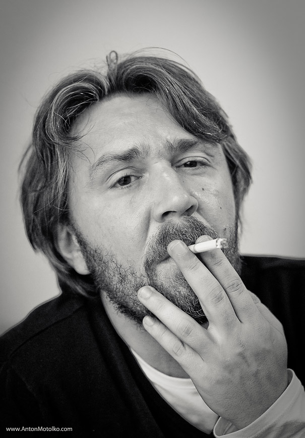 я ставил задачу снять портрет в контровом свете, пердать задумчивое настроение (которое характерно для изображенного человека) посредством позы выражения лица и световой тональности, получить зернистое изображение. я считаю, что задача выполнена хотя возможно следовало повысить экспозицию на 2 ступени, или использовать контрастный проявитель.