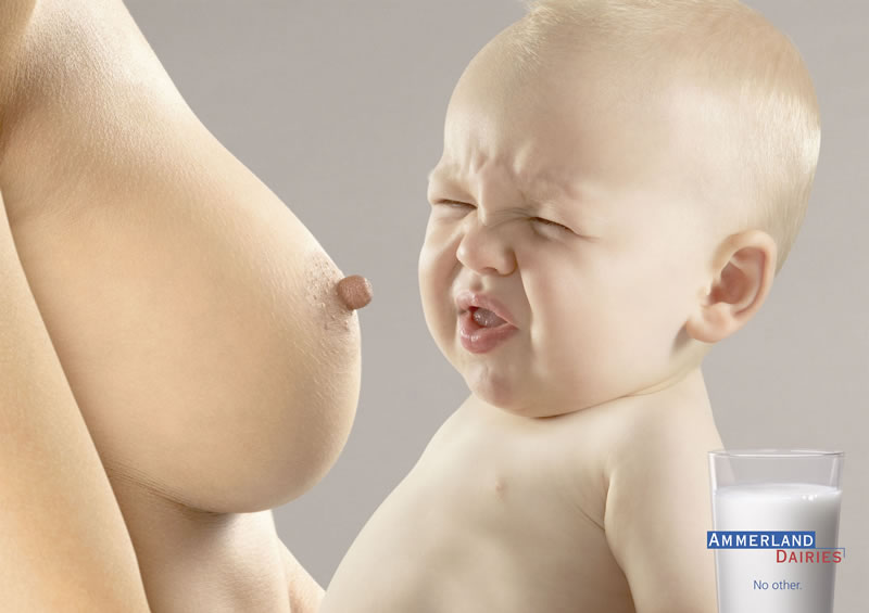 Очень вредная реклама! По хорошему нужно было поменять местами стакан с молоком и грудь. ;)