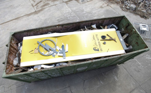 Логотип «Opel» в мусорном ведре. (27 мая 2009 года) REUTERS/Pawel Kopczynski