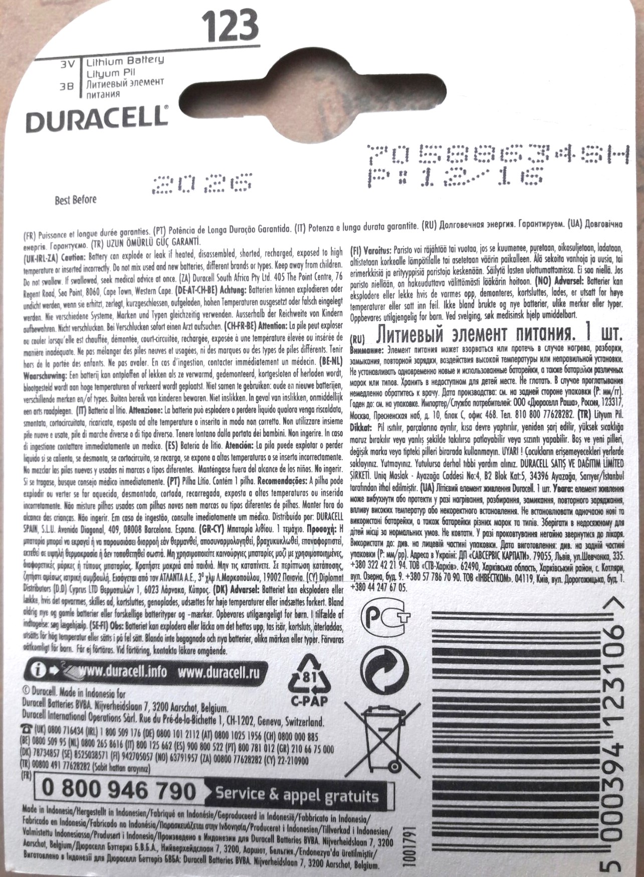 Сообщение  Литиевые батарейки CR123A DURACELL (3v) в упаковке