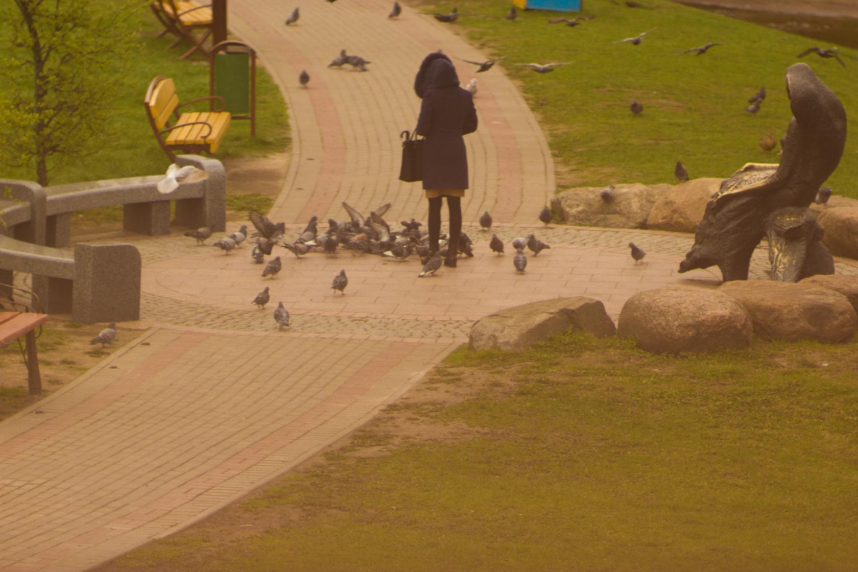 Внимательнее смотри! Обрати внимание на 8-го голубя слева - это он на голубиху в 3-м ряду поглядывает, не оглянулась ли она... а та отвернулась попой и жрет... :'(