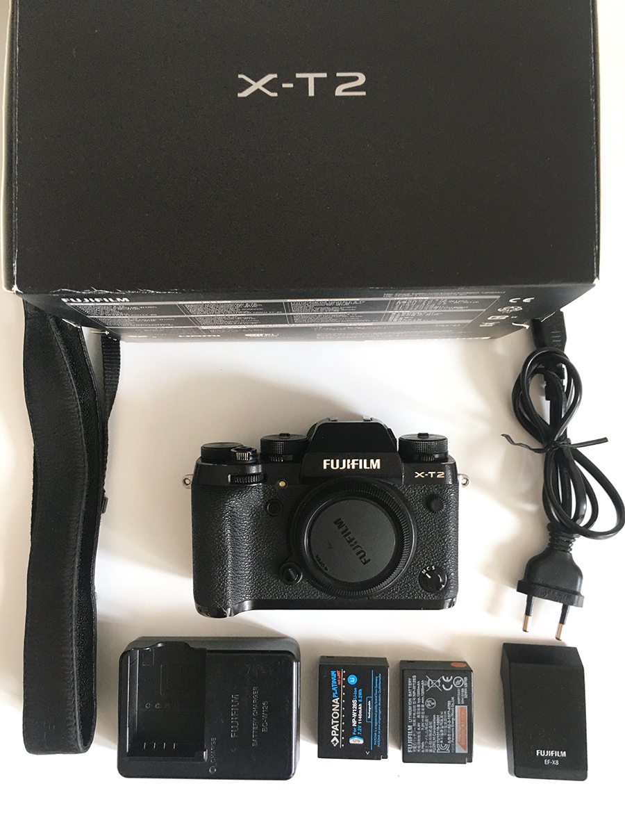 Fujifilm X-T2 Body без объектива. Полный комплект (камера, зарядка, ремешок, родной аккум., коробка, документы ) + доп. аккумулятор + новая защитная пленка для экрана. Все работает отлично. Камера без ремонтов, падений и прочих приключеий) Есть небольшие потертости внизу корпуса (на метале) от ношения в фотосумке. Пробег затвора 30тыс. Покупал фотоаппарат у официального дилера в 2018 году.