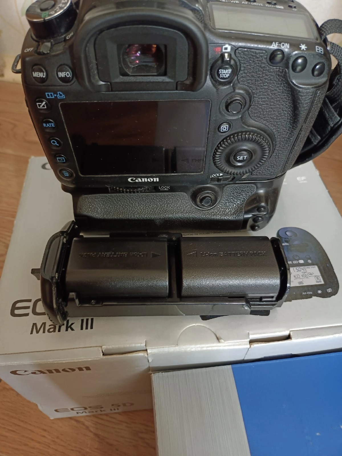 В комплекте тушка, коробка, документы, резиновый чехол, батарейный блок, 2 аккумулятора, зарядка