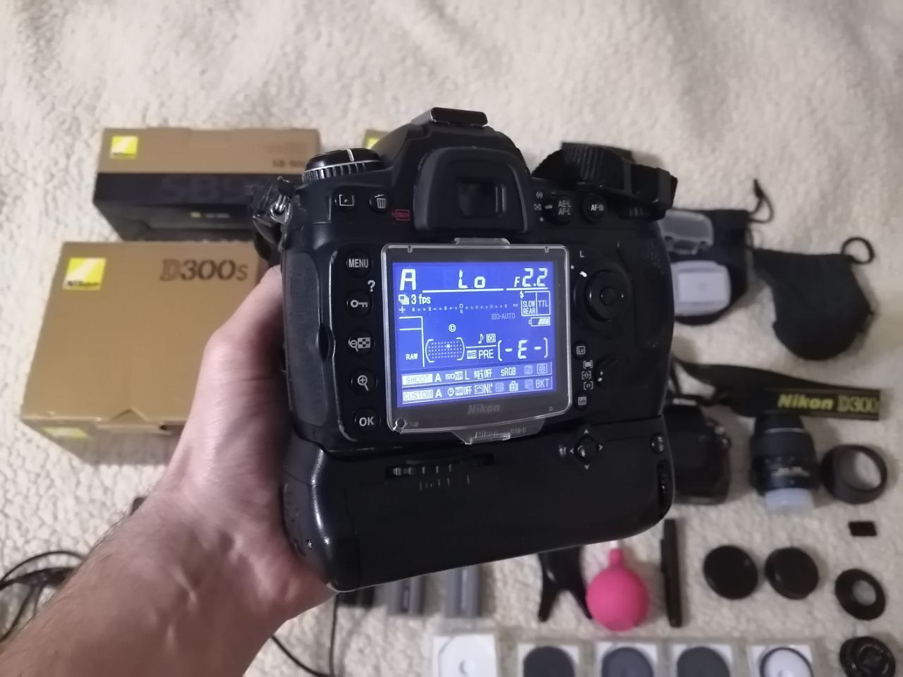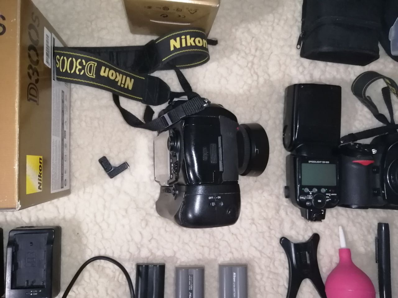 1)фотоаппарат Nikon D300s (боди) пробег : 113634 с тремя батарейками + зарядное +батблок =650 рублей. В отличном состоянии!! Есть все заглушки, резинки в отличном состоянии - замены не требуют! Заглушка на горячий башмак присутствует. Защитный экран есть! +Коробка.