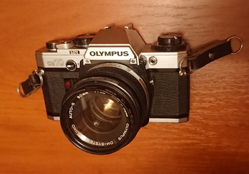 Фотоаппарат пленочный зеркальный "Olympus OM-10" с объективом Zuiko 50 mm f/1.8 .