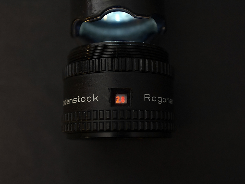 Rodenstock ROGONAR 50mm f2.8 объектив для ФУ. Присутствует подсветка значений диафрагмы, что есть крайне удобно при печати. Посадка М39.