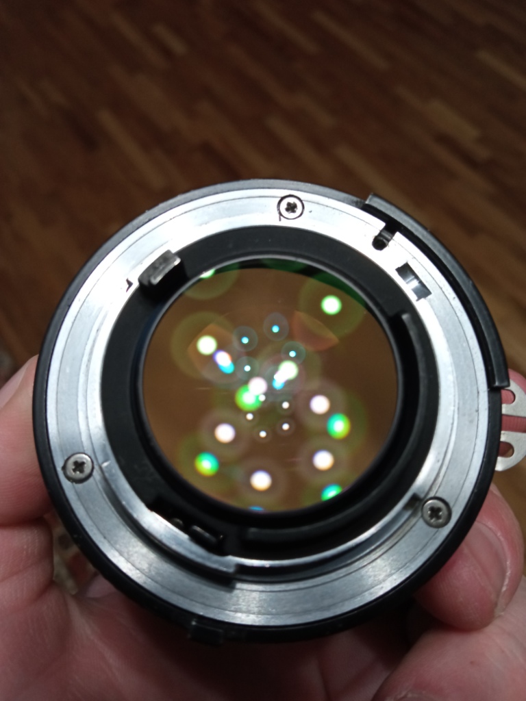 Объектив в неплохом состоянии,линзы хорошие,но диафрагма в масле,медленно срабатывает,сзади видны следы вмешательства на винтах.Две крышки.