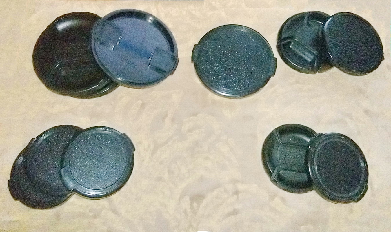 Крышки на объектив разные: 77, 72, 67, 55, 52, 49.