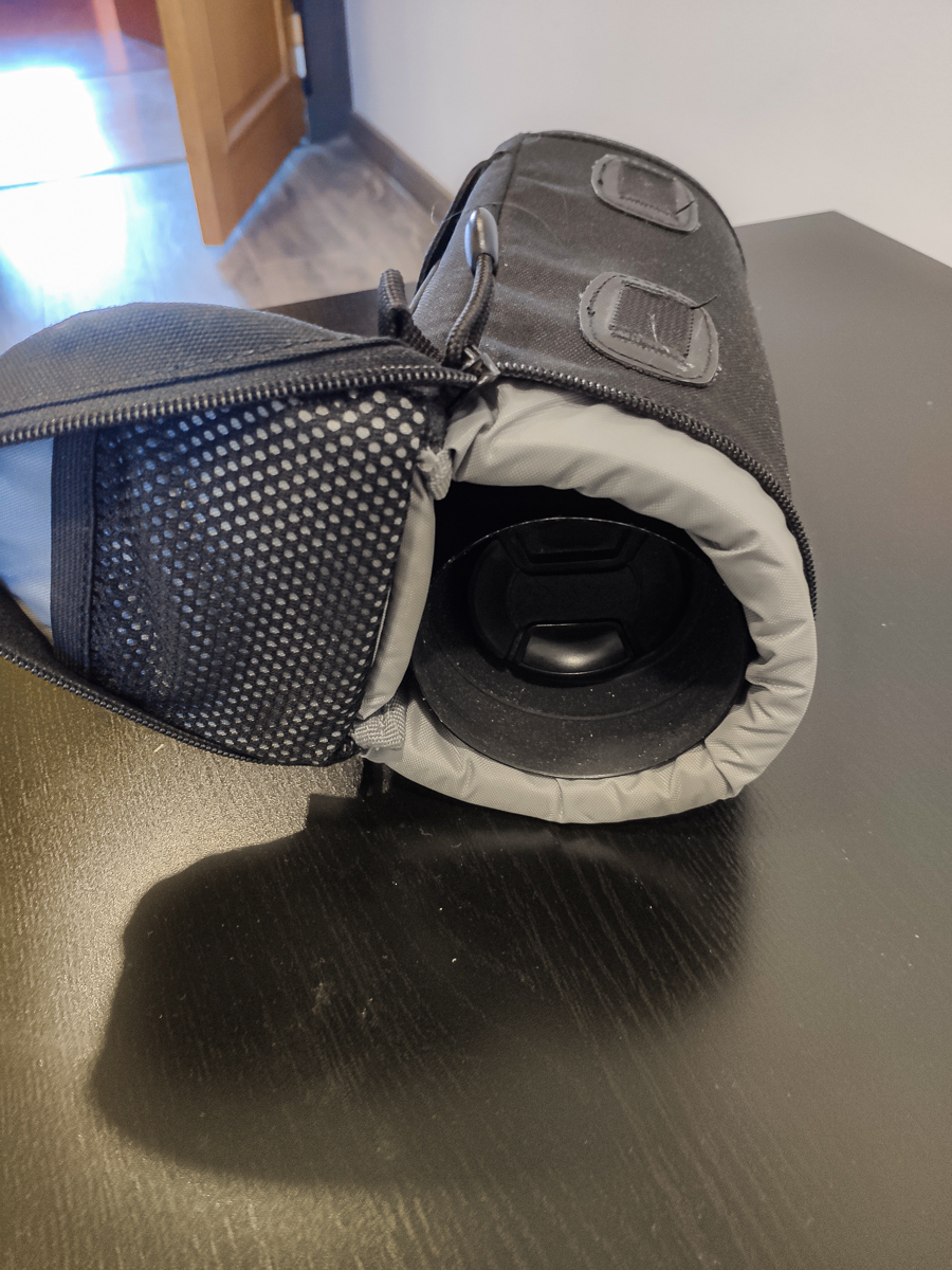 В комплекте крышки, бленда и прекрасный кофр для хранения и переноски Lowepro Lens Case