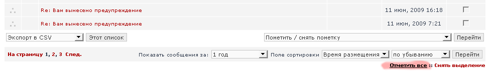 Мужики, я не настолько часто пользуюсь системой ЛС, но если вы настолько активно её используете, неужели вы не увидели внизу страницы со списком ЛС вот такие ссылки и выпадающие списки? :)