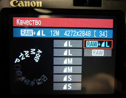 Меню --> Качество (в крайней левой закладке) --> RAW