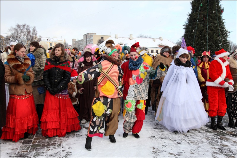 Выложила на ветку ДОМа 13 зимний снимок, и такая у меня ностальгия по новогоднему настроению появилась! Погуляла вот с внуком, накормила его обедом, и... снова за компьютер, но только на несколько минут, чтобы показать вам еще три зимних фотографии (конец декабря 2009 г.). На первом снимке наши гродненские фотокоры работают - снимают фоторепортаж о параде Дедов Морозов и Снегурочек. Сашу Саенко узнали? Он стоит в карете, и, как всегда, на высоте. Ну, а на остальных фото - народ веселится и торжественное новогоднее шествие по ул. Советской.