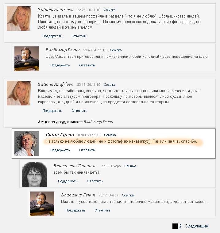 Alex Skill - солидарен, что текст там первичен и без него фотографии даже и не смотрел бы, но смотря фото господина Гусова по многим возникают смутные ощущения по поводу их эстетической ценности... Хотоя опять же - возможно тут не стоит разглядывать каждое фото в отдельности т.к. оно является частью мозайки.