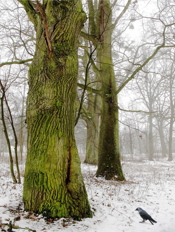Года три назад засняла дубы в Румлёво. Конец зимы, оттепель, стволы дубов словно зелёным бархатом обернуты - было настроение, которое с помощью инструментов фотошопа хотелось передать зрителю. Вот это фото.