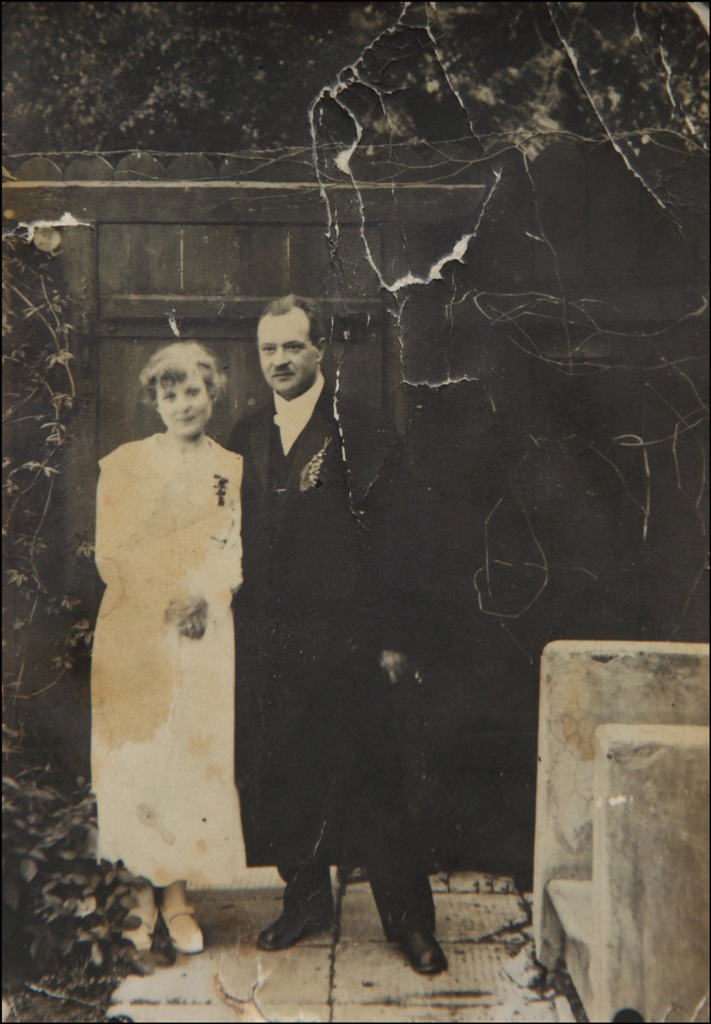 На первом фото мои дед и бабка после венчания весной 1919 года. Стоят они в саду возле крыльца дома 13 – здесь вход в дом для домашних, а парадный вход для гостей и пациентов доктора Константина Белецкого находится со стороны улицы Академической. В кармашке пиджака моего предка букетик ландышей, а бабка юная девица. Она воспитанница гродненского женского монастыря, которой повезло: её взяли замуж. В 1918 году монахини вместе с сиротами приюта вернулись из эвакуации, куда уехали еще во время первой мировой войны, они пережили в Москве большевицкий переворот, голодали, по дороге в Гродно, ставшим польским, заразились чесоткой. Дед пришел в монастырь лечить сирот, где и встретил мою бабку. Получив согласие на развод от бездетной первой жены и благословение архиерея на новый брак, он снова женился и скоро стал отцом двух дочерей.