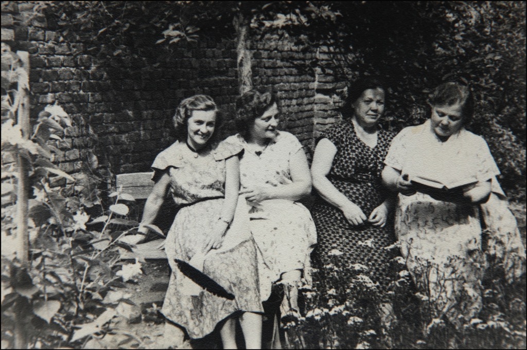 На четвертом фото 1959 года все в том же саду дома 13 на скамейке сидят сестры: мама с сестрой Ирой, и бабушка со своей сестрой Маней. Мама с нами приехала в Гродно на летние каникулы из Легницы, а тетя Маня приехала навестить нас из Новочеркасска. Чтобы заработать на обратный билет, она в то лето устроилась в пионерский лагерь мыть грязную посуду, в понедельники ее отпускали до вечера домой, и она приносила в кошелке куски сливочного масла, желтого сыра и ломти хлеба, которые не съели пионеры. Бабушка ее за это ругала, называла нищенкой и они громко ссорились. Тетя Маня перенесла во время немецкой оккупации жестокий голод и знала цену хлебу, она не могла смотреть равнодушно, когда хлеб с маслом и сыром выбрасывались в помои.