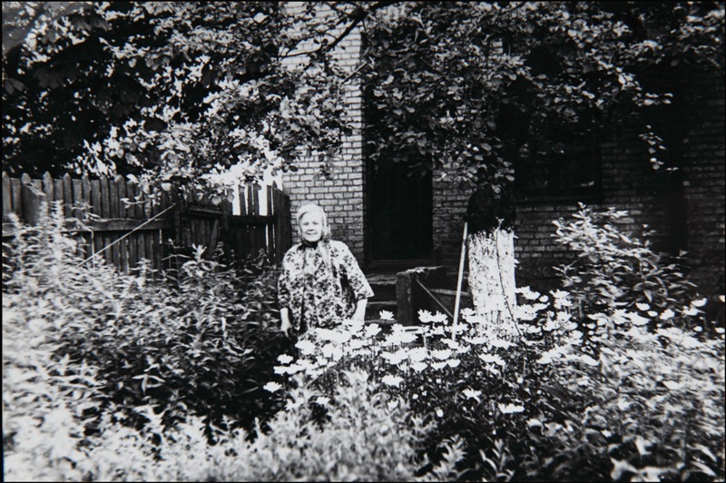На последнем фото 1975 года моя бабка все в том же саду дома 13. Сад ее стараниями был превращен в цветущее райское место – она умела выращивать очень редкие цветы, но ее любимыми ромашками и флоксами были засажены все свободные клочки земли. На фотографии видна яблоня, которую осенью 1941 года посадил немецкий генерал, когда оккупировал дом 13. Яблоня сорта золотой ранет одаривала своими замечательными плодами нашу семью каждый год. Когда осенью с ее ветвей срывалось огромное спелое яблоко, звук от его удара о землю был слышен в ближних к саду комнатах.