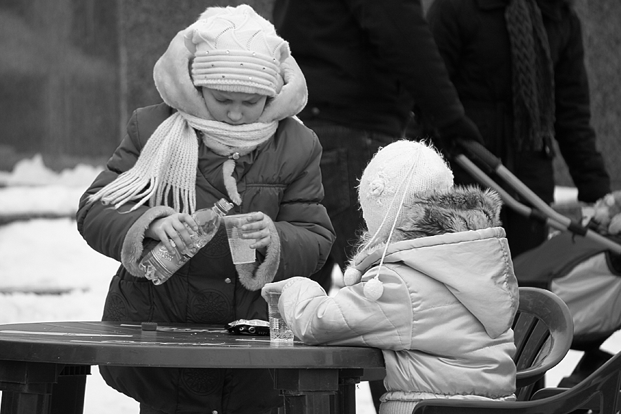 MATUSHKA, детишки удивительно быстро замечают все за взрослыми все привычки и повторяют их. Не мне Вам говорить. Я наблюдал за девчонками, они так пафосно разливали лимонад по стаканам, потягивали не спеша, закусывали шоколадом и говорили "за жизнь" совсем как взрослые за бутылочкой)