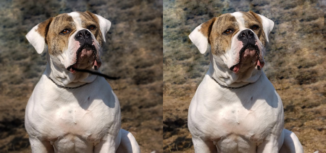 Ситуация такая же: собака крупная,широкая,но на фото я это передать не могу. Пробовала снимать выше,ниже,сбоку,перед носом.......Толку нет.