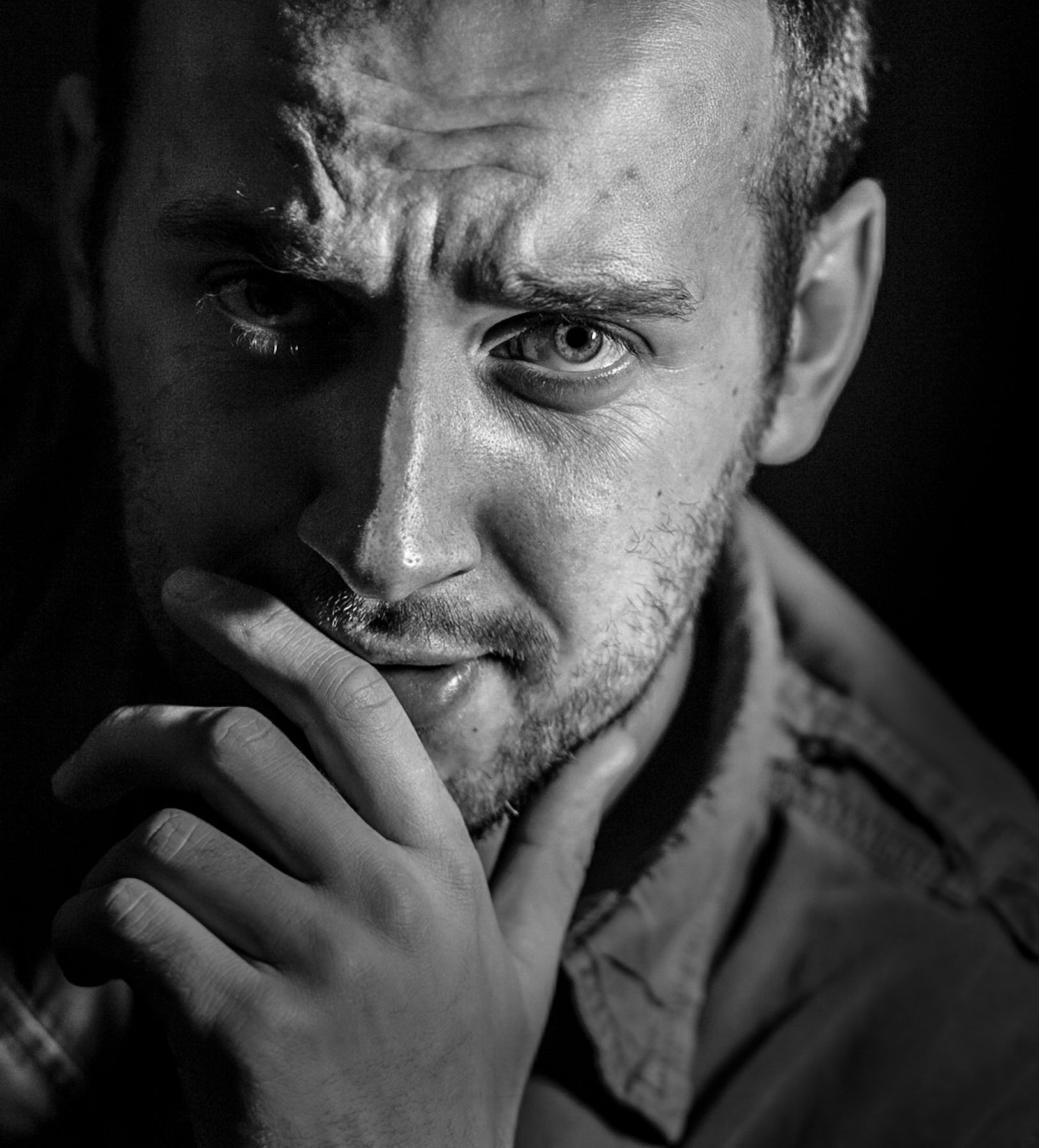 Это всё условно. Сделал в Лайтруме за 2 минуты. ПЕревод в ЧБ - автомат. Основная идея - это повышение Чёткости(Clarity) деталей на лице